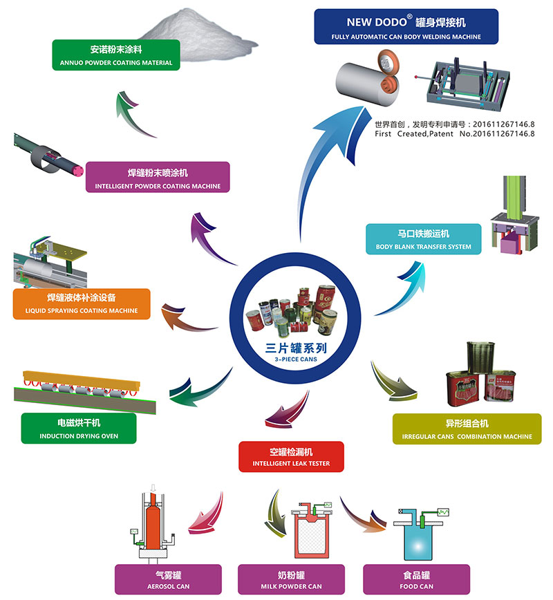 隨著制罐要求不斷提高,我司陸續(xù)研發(fā)生產(chǎn)出全自動馬口鐵搬運機、全自動粉末噴涂機、高速智能電阻焊罐身焊接機、節(jié)能型電磁感應(yīng)烘干機、全自動金屬罐檢漏機等制罐設(shè)備,交付并收獲廣大用戶的一致贊許。